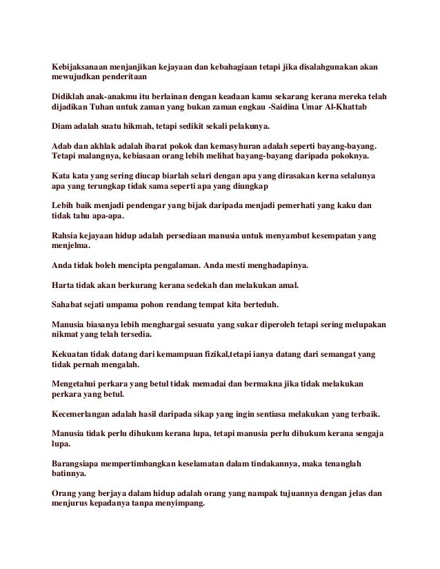 Kukur apa kepada kukur nyiur juga yang binasa. Cogan kata Usaha Tangga Kejayaan sudah menjadi sinonim dalam diri rakyat Malaysia tidak mengira agamabangsadan umurCogan kata seperti ini dapat memberi kata-kata semangat kepada seseorang individu melakukan sesuatu perkara sehingga berjayaRingkasnyakejayaan. Ia menekankan sikap untuk menerima sesuatu yang takkan dapat diubah lagi dalam keadaan semasa.