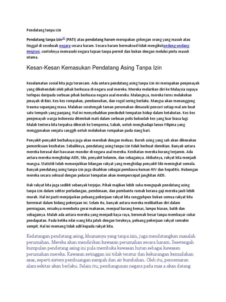 Karangan Pendatang Asing Tanpa Izin Pdf
