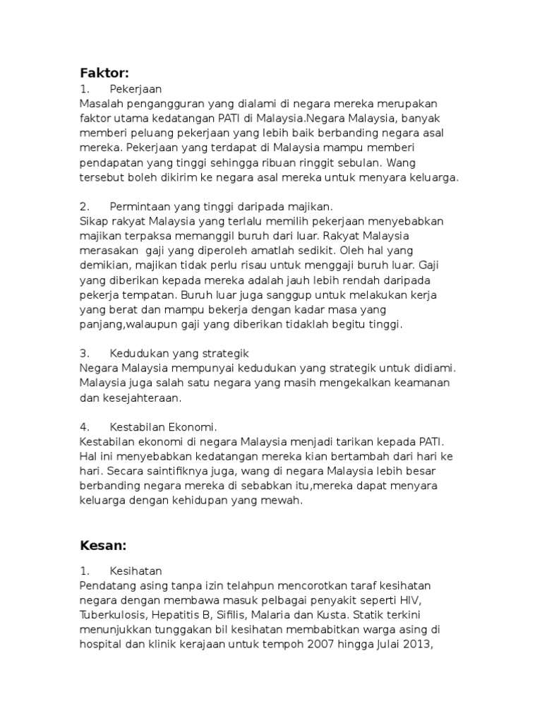 Kesan Kemasukan Pendatang Asing Pdf